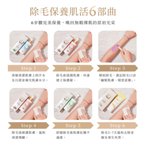 數種天然草本粹取精華,可修護及舒緩各種除毛後不適感。